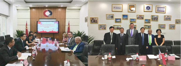 9月18日上午,美国滑石大学副校长Amir Mohammadi,副校长Bradley Wilson一行访问我校。双方就切实开展深入合作进行了细致交流。副校长何勇平教授,国际交流合作处韩艳处长,国际商学院赵驹院长会见了代表团,国际合作与交流处、国际商学院相关人员参加了会谈。
