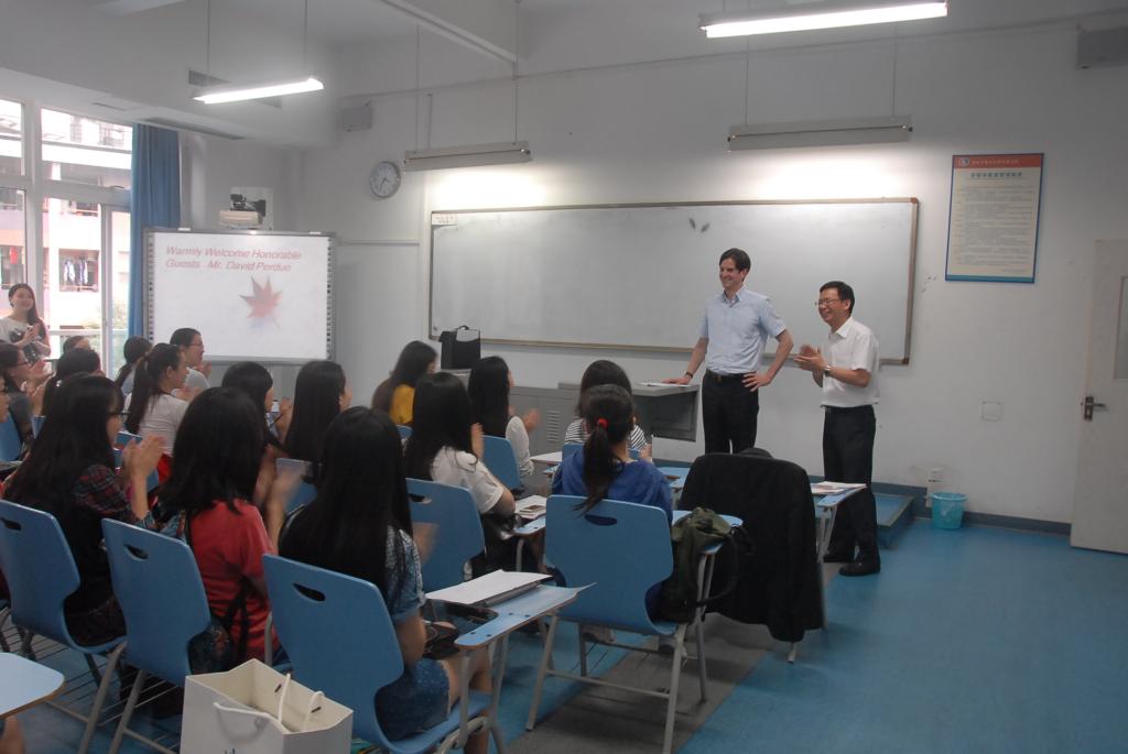 会谈结束后,David Perdue 与我院中加精英项目的学生进行了亲切的交流。领事介绍了加拿大的概况,回答学生疑问,对我院学生的英法双语水平表示高度赞许。