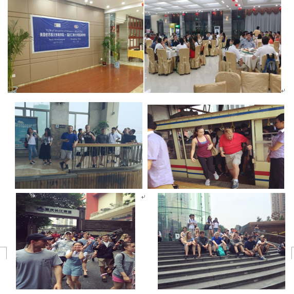 67日下午,来自美国密苏里留学团在我院十一名志愿者与三位老师的带领下进行了重庆城市观光的活动。包括乘坐重庆特色的交通工具-长江索道,参观重庆特色景区洪崖洞,欣赏重庆特色美食与建筑和南滨路景色。最后在解放碑参观美术馆和进行了自由活动,感受重庆的文化与繁华。