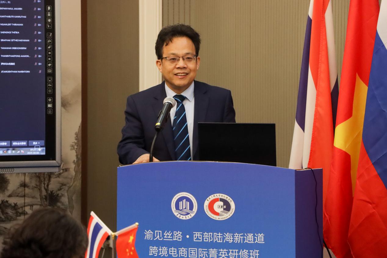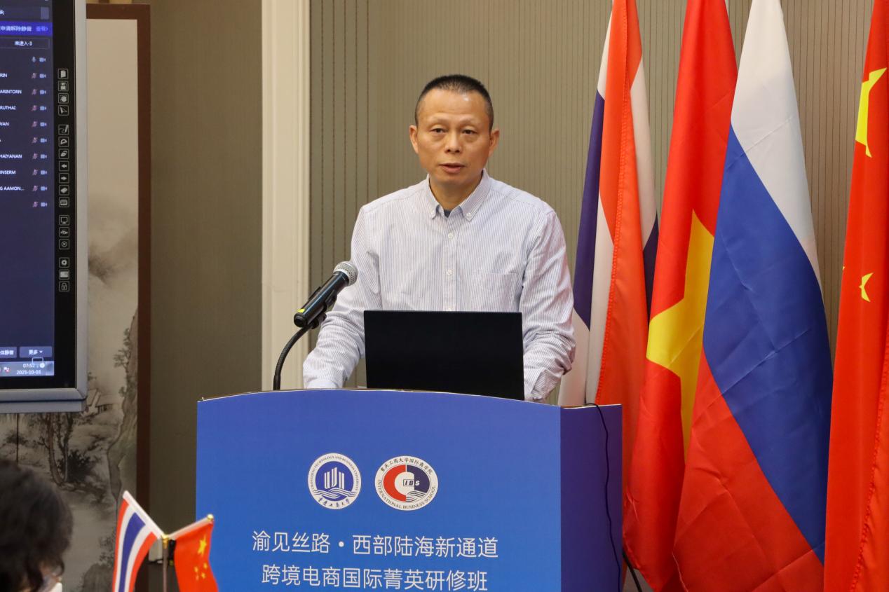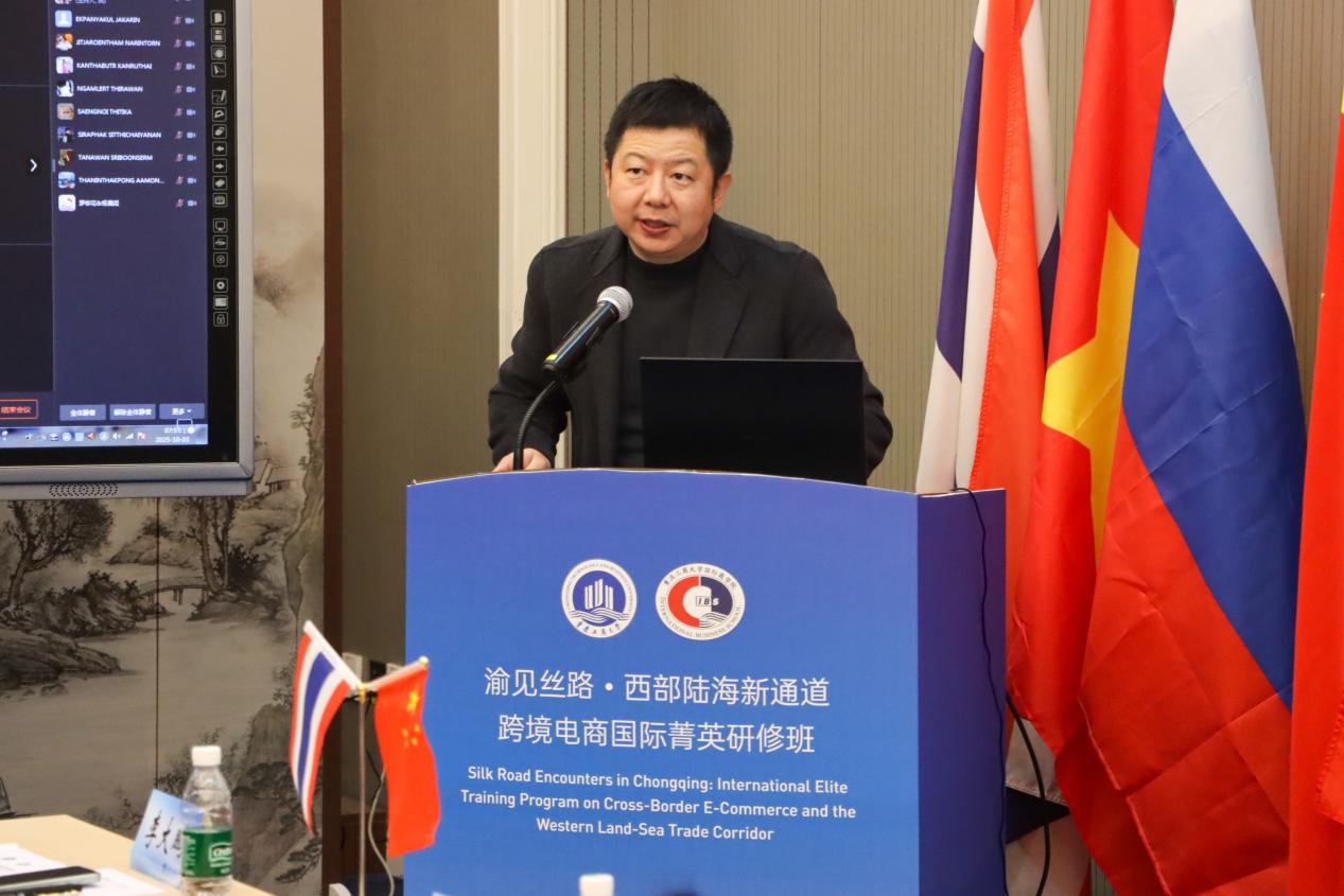 2025年11月3日上午,“渝见丝路・西部陆海新通道跨境电商国际菁英研修班”在yl7703永利集团图书馆南楼S116正式开班。本次研修班汇聚国外高校、企业及行业协会代表,以跨境电商为纽带,采用“线上+线下”融合的形式,搭建起知识共享、资源对接的合作平台,助力深化中国与泰国及东盟相关国家的命运共同体构建。