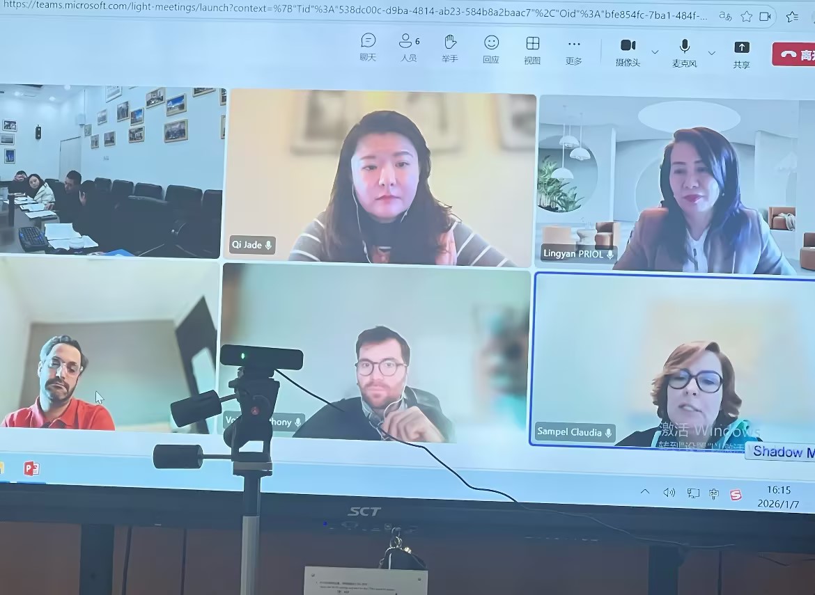 2026年1月7日15:30,我院与法国勃艮第高等商学院(BSB)视频连线,召开2+2联合培养项目专题线上会。外方由国际发展处负责人HalloumiRudy率领相关工作人员出席,我院院长詹川、国交法语部部长张蓝月携全体部门人员共同参会,双方围绕深化校际合作、推进2+2联合培养项目等议题展开深度磋商。