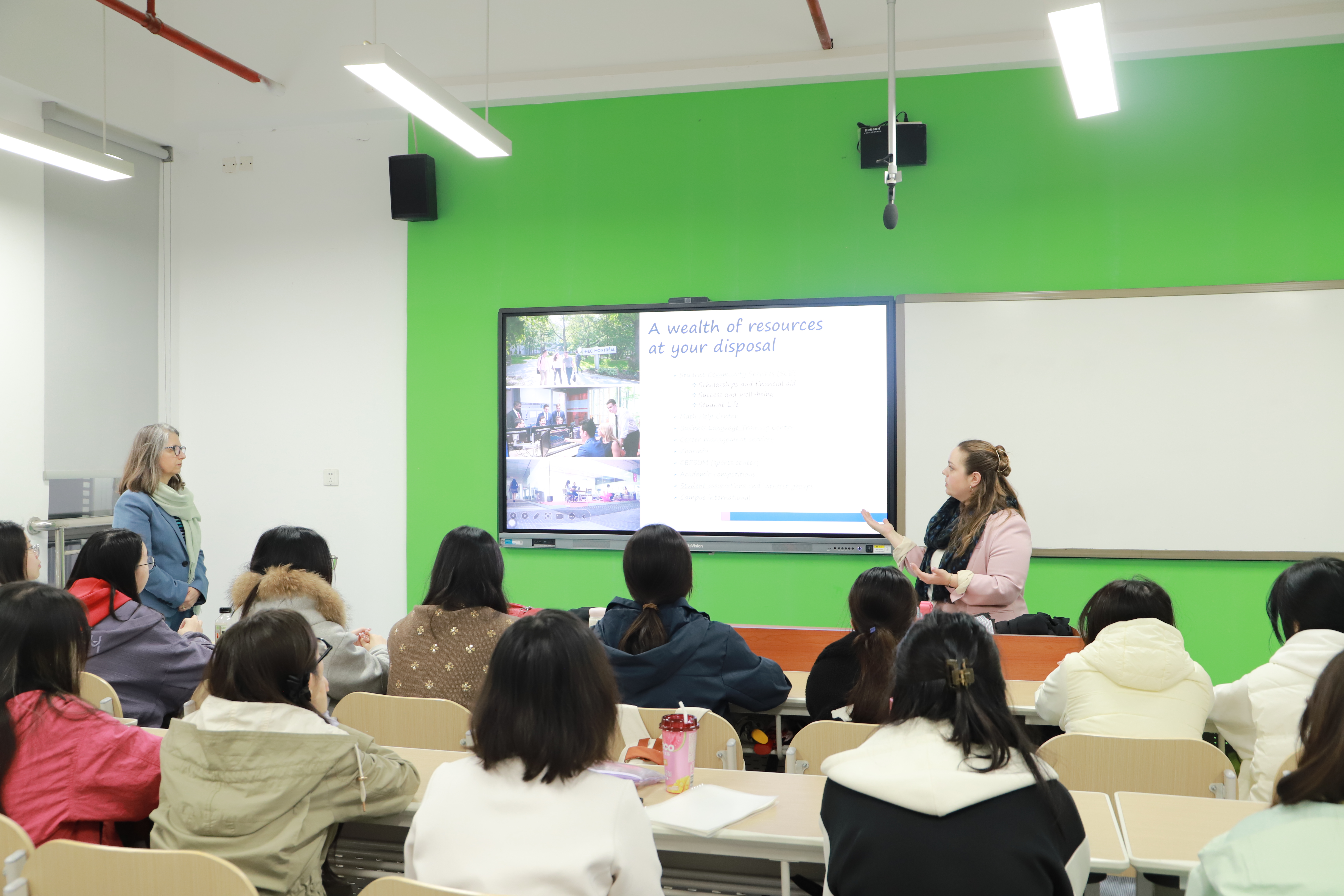 上午9点,蒙特利尔高等商学院代表团与国际商学院2+2双学士项目学生召开见面会。会上,达尔马亚克女士全面介绍蒙特利尔高等商学院的办学情况,并详细解读了项目学生在加方学习的流程、课程设置及奖学金政策,并与学生进行自由问答互动,现场气氛热烈。