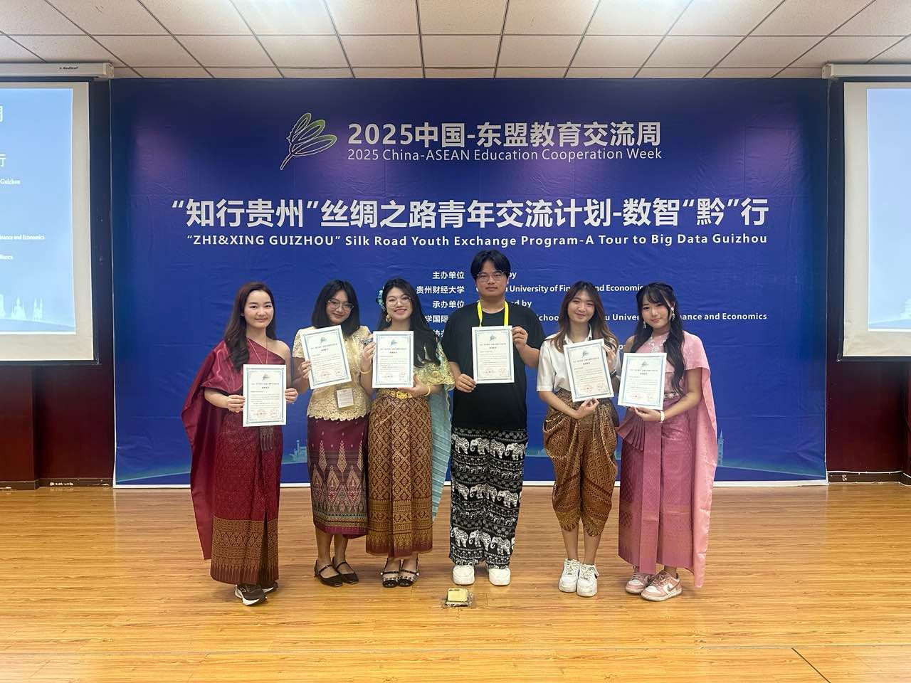 2025年6月23日,我院中泰2+2的6名学生参加由贵州财经大学主办、全球电商发展教育联盟协办的2025中国-东盟教育交流周“知行贵州”丝绸之路青年交流计划。该活动邀请了yl7703永利集团、重庆师范大学、四川外国语大学来自俄罗斯、泰国、日本、斯里兰卡、越南的12名留学生参加。