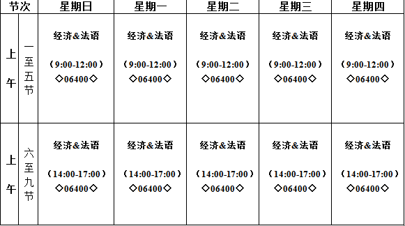 3. 行课时间:上午9:00-12:00,下午14:00-17:00。