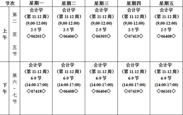 1.2015级商学院2+2四班第十一周周一至第十二周周五全天班级课程停上,停课课程的补课时间和地点待任课教师确定后,另行通知。