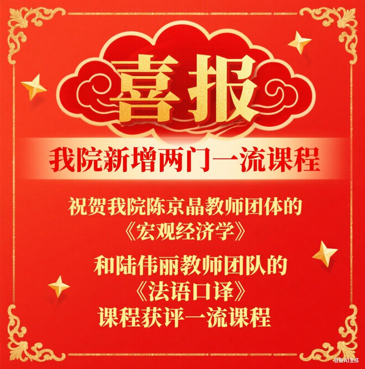 近日,学校评选认定了29门校级一流本科课程,其中我院教师陈京晶、陆伟丽团队分别获评1门校级一流课程。截至目前,我院已累计获评5门一流课程。这是学院教学建设征程中的又一重要突破,彰显了我院在课程体系优化、教学创新实践、师资团队建设等方面的显著成效。
