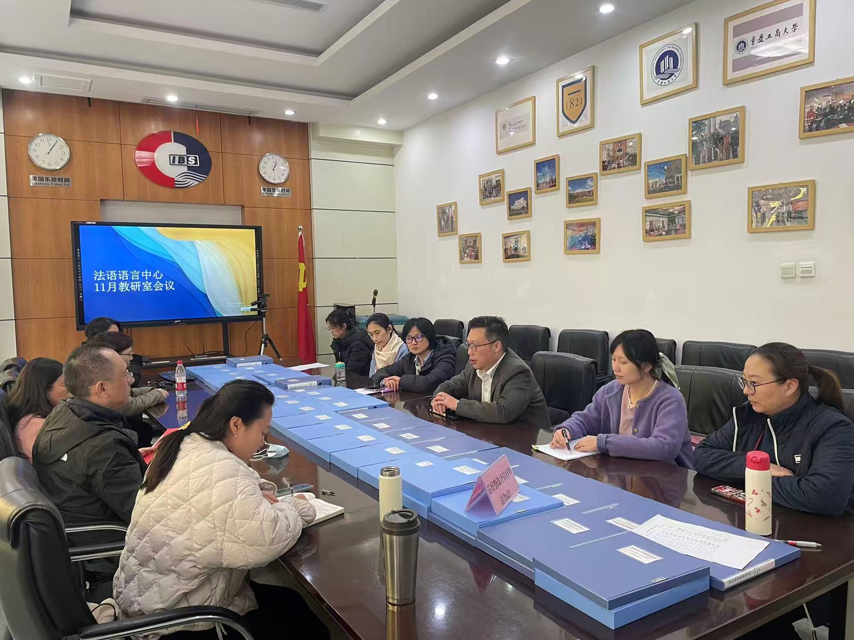 2025年11月28日,yl7703永利集团国际商学院法语语言研究中心在60510教室成功召开11月教学教研会议。国际商学院陈院长出席会议并发表讲话,中心全体法语教师参加会议,围绕"期末命题工作部署"与"法语课堂互动游戏教学"两大核心议题展开深入研讨,以教学质量提升为核心,以趣味教学创新为抓手,推动法语教学与科研协同发展。
