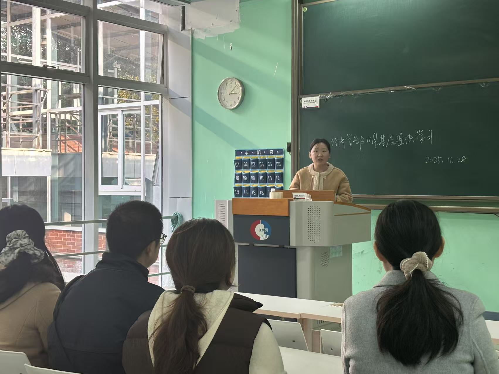 会议率先聚焦师德师风建设,陈京晶老师分享了师德师风演讲比赛获奖心得。陈京晶老师结合参赛备赛经历与经济学课程教学实践,从“师德铸魂、教学践行”的角度,深入阐述了如何将师德修养融入课堂教学、学生培养等环节,以真实案例传递“以生为本、潜心育人”的教育理念,为全体教师提供了鲜活的学习范本。随后,陈京晶老师对学期末重点工作作出系统安排:明确命题需严格贴合教学大纲,注重知识应用与能力考查;强调监考工作要严守纪律规范,全力保障考试公平公正;要求阅卷过程严谨细致、评分客观准确,并及时做好成绩分析与反馈;同时通知近期将启动年末总结工作,需梳理教学成果、查摆问题不足,为后续工作优化奠定基础。