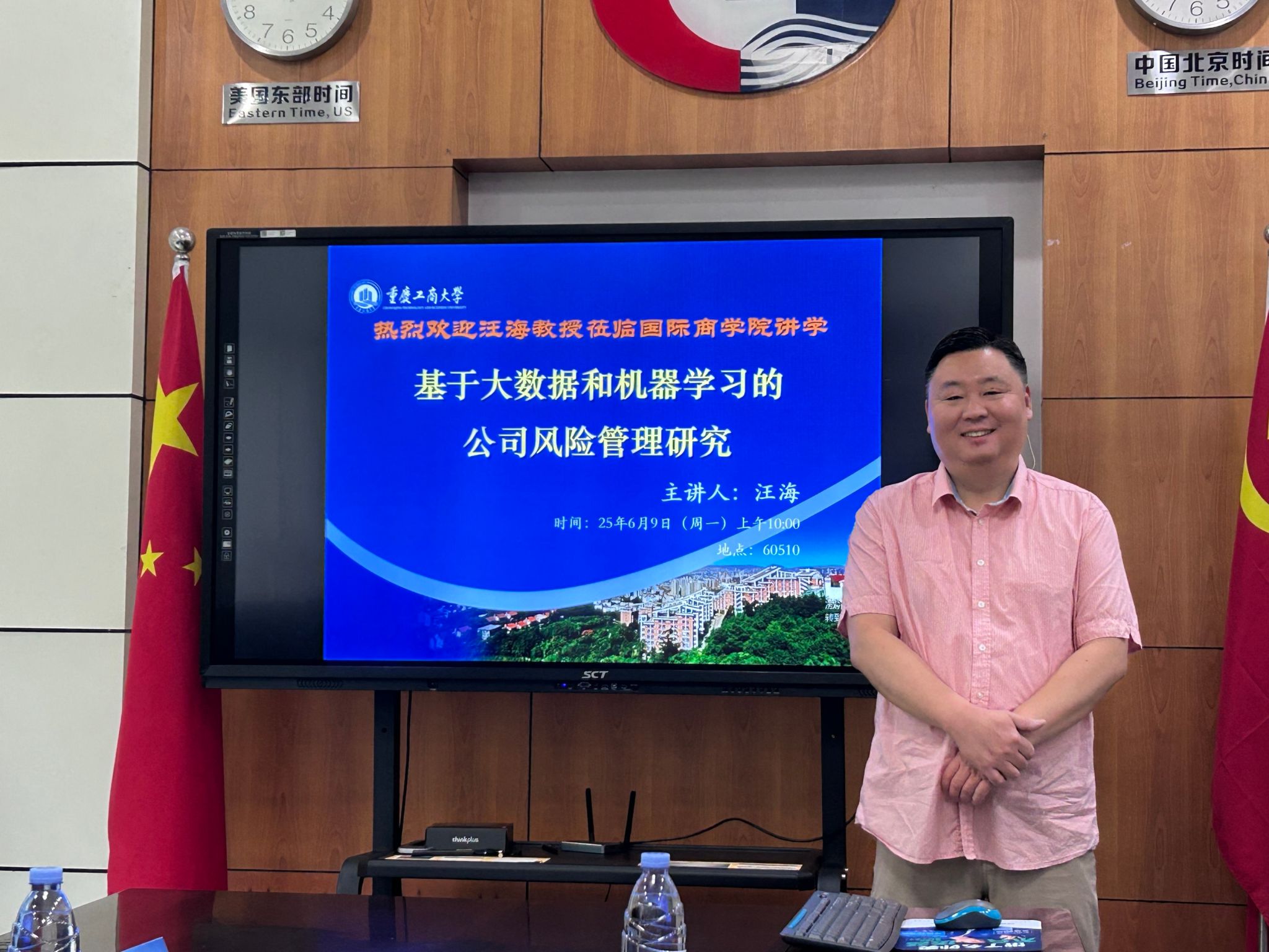 2025年6月9日,加拿大圣玛丽大学索贝商学院金融信息系统和管理科学系的知名教授汪海博士莅临国际商学院,为师生们带来了一场主题为“基于大数据和机器学习的公司风险管理研究”的精彩讲座。此次讲座吸引了众多师生的积极参与,现场气氛热烈,学术氛围浓厚。