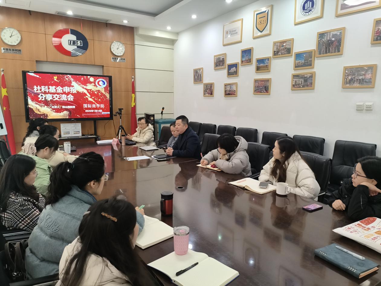 为深入贯彻落实国家哲学社会科学发展规划,提升教师科研能力与项目申报质量,助力学院学科建设与科研水平迈上新台阶,国际商学院于2026年1月14日成功举办“2026年度社科基金申报经验分享会”。国际商学院院长詹川出席了本次会议,会议吸引了全院教师及科研骨干参与,现场气氛热烈,互动频繁。
