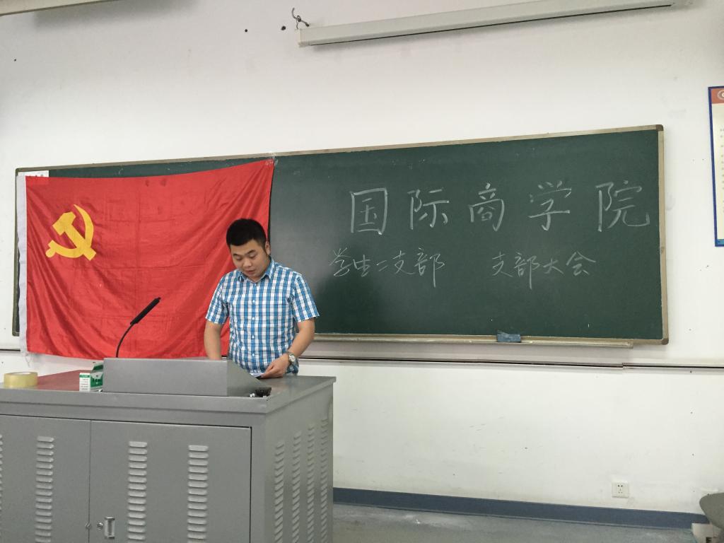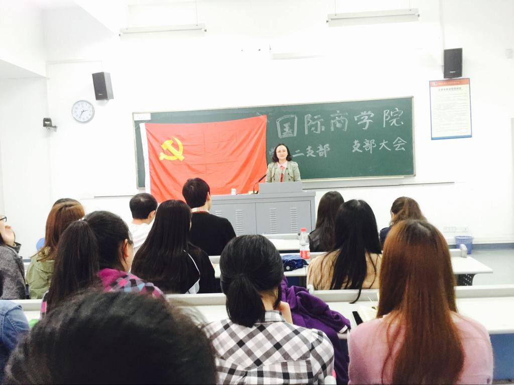2016年4月11日下午1点,中共国际商学院总支学生二支部支部大会在60404召开。本次会议主要讨论了雷宇吉等8名同学组织发展问题。学生二支部书记苟焰老师,学生辅导员王娟老师,田莎老师,高娟老师及13位预备党员参加了本次大会。本次会议应到正式党员4人,实到正式党员4人。