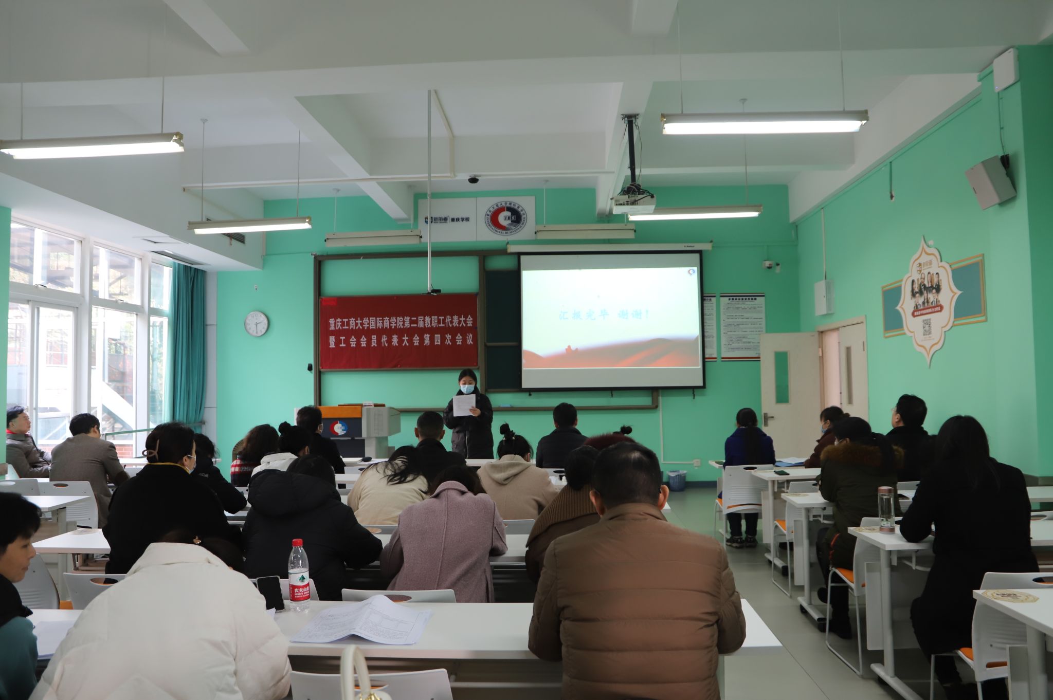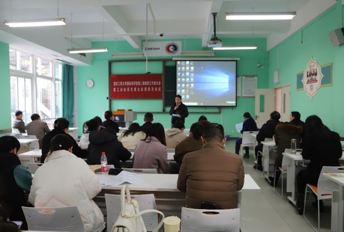 2024年1月12日下午,伴随着嘹亮而雄壮的国歌声,国际商学院第二届教职工代表大会和工会会员大会第四次会议在国商大楼502教室召开。参加本次会议的教职工应到71名,实到62名,会议由学院党总支书记黄谦主持。
