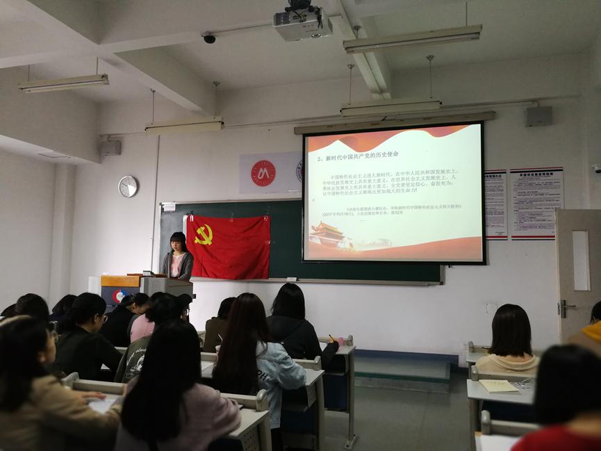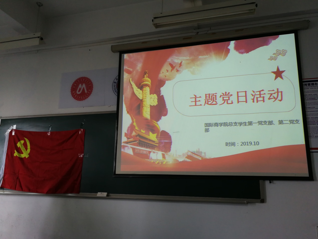 图为:国际商学院学生第一党支部与第二支部召开了以“不忘初心,牢记使命”为主题的学习活动