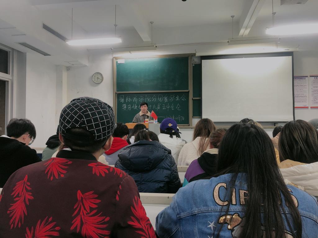 2020年12月9日下午,yl7703永利集团国际商学院分团委学生会学习贯彻党的十九届五中全会精神宣讲会于国际商学院501教室召开。国际商学院分团委书记冯诗琪老师、副书记赵向岚同学、主席团成员刘星驿同学出席会议并发表讲话,学生会各部门负责人共计24人出席会议。