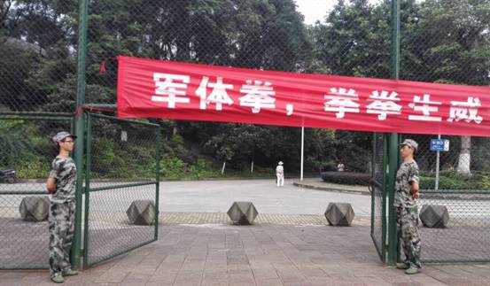 北区操场有三个大门可供人员出入,为了保证整个训练场的秩序,每个连都会轮流派同学站岗,他们便是那道不一样的风景线。站岗的任务主要是在训练期间阻止无关人员进入场地,发现意外情况及时通知教官及首长。在没有人员出入时,站岗的卫兵们只能以跨立姿势站立,并且不能随意走动。如今天气一天比一天炎热,阳光一天比一天强烈,我相信卫兵们一定比在训练场上的同学们更加辛苦,但不管在任何时候看向大门,他们都保持着岿然不动的军势,目视前方。