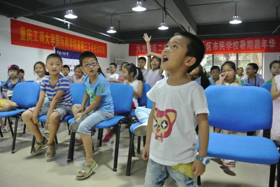 2016年7月6日上午9:30,我院暑期三下乡社会实践服务团成员刘琪和留学生郑凯鸿在二郎街道云泽路社区市民学校给社区小朋友带去了趣味英语,他们寓教于乐,利用视频教学和集体游戏,提高了社区小朋友学习英语的兴趣和积极性,同时也巩固了他们在课堂所学的知识。小朋友在互动环节的参与和配合,也使课堂效果更加精彩。在活动结束之时仍有小朋友不断赶来参加活动,留学生志愿者郑凯鸿给他们耐心讲解了一遍上课的内容,受到社区家长和小朋友的一致好评。