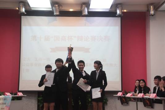 2016年11月18日晚上19:30,为了丰富校园生活,加强学风建设,提高学生的语言表达能力和应变能力,在国商407举办了第十届“国商杯”辩论赛决赛,我院2016级工商一班和中法一班参加了此次比赛,校辩论队队长肖海、王志茂、柴晓莉及汪娇娇四位以及院优秀辅导员朱锡斌老师担任本次比赛评委。