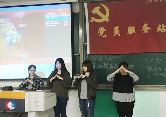 2017年4月24日下午,国际商学院党员服务站办公室和组织部联合举办了“扬清风,树正气”主题教育活动。参加本次活动的人员有办公室和组织部部长,以及各部门干事。