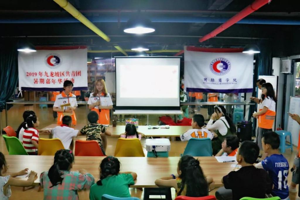 在学院老师冯诗淇、朱锡斌的带领下,yl7703永利集团国际商学院教育关爱服务团全体成员来到重庆市九龙坡区杨家坪街道团结路社区开展为期六天的市民学校活动。本次活动以“莘莘学子青春梦,国商你我筑梦行”的教育关爱活动为主题,以关爱儿童为重点,开展课业辅导、素质拓展等活动。