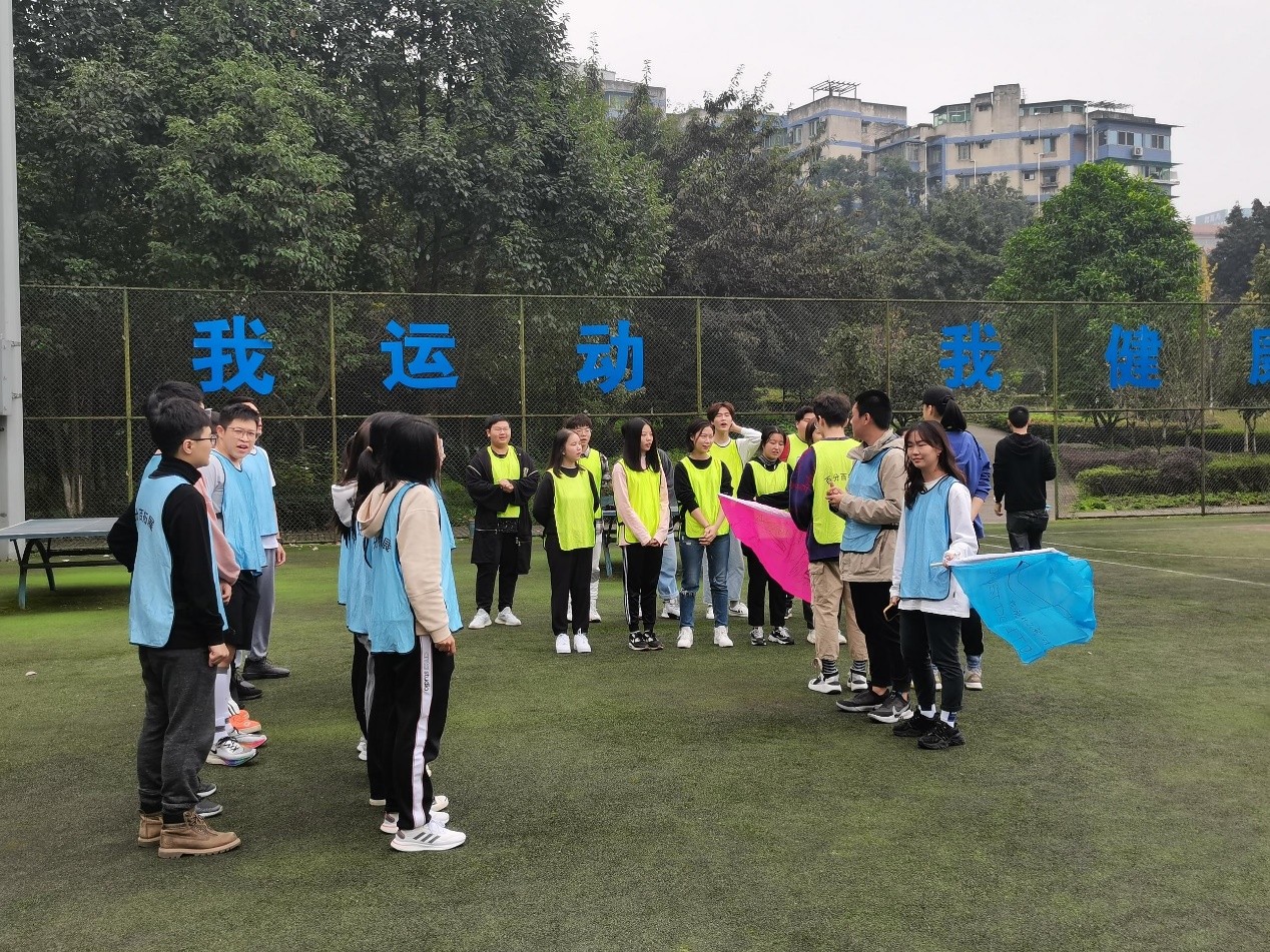 初始环节以“听三字,抓手指,受惩罚”的小游戏将现场氛围活跃起来。随后参加活动的同学们被分为“砍刀队”和“我说什么‘对’”,两队分别进行了舞蹈展示和口号宣言。通过该环节堆配合,同学们初步熟悉,大家发挥自身特长,精心设计团队队旗LOGO、排练舞蹈和口号,展现了两队的良好的风貌。