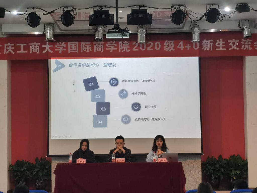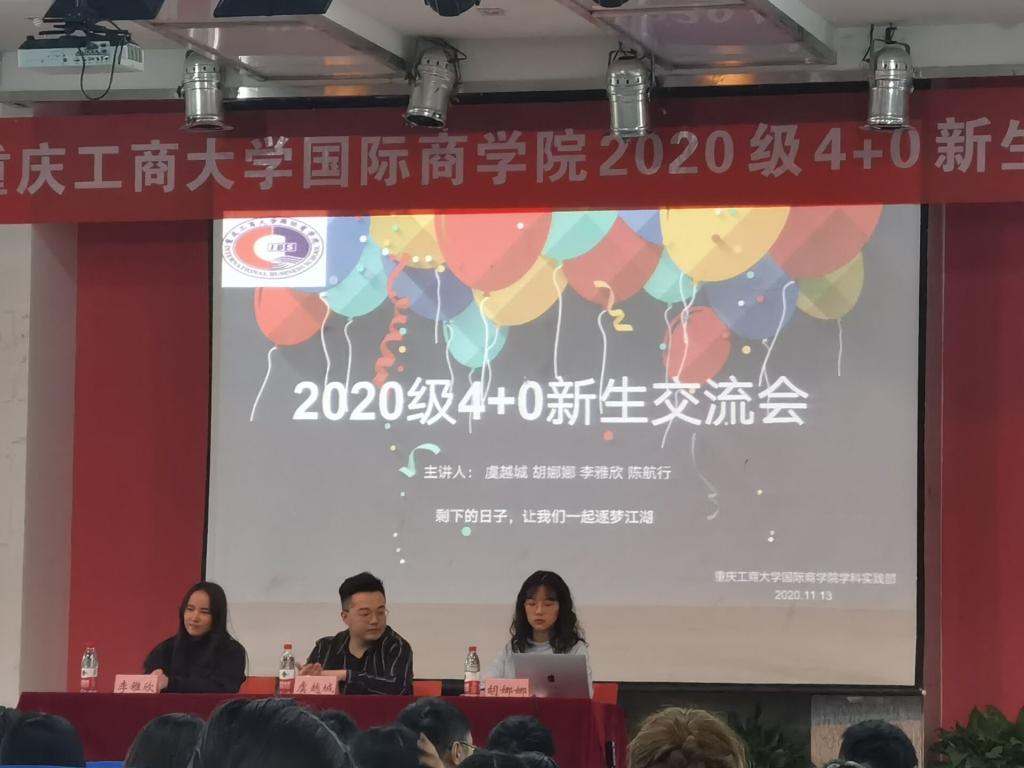 分享经验,交流梦想。为丰富校园生活,促进同学之间的交流,指引2020级同学找准学习方向,更快更好地融入国际商学院这个大家庭,yl7703永利集团国际商学院学科实践部特地在2020年11月14日在国商407教室,举办了主题为“经验分享,共筑国商”的新生交流会。本次新生交流会安排了已经毕业了的优秀的学长学姐,给2020级同学解疑答惑,交流分享学习经验和学习方法,以及如何合理安排时间,提高各方面的能力,激发同学们对学习的热情,正确且恰当的处理好学习与生活之间的关系,共筑自己在国际商学院的美好未来。