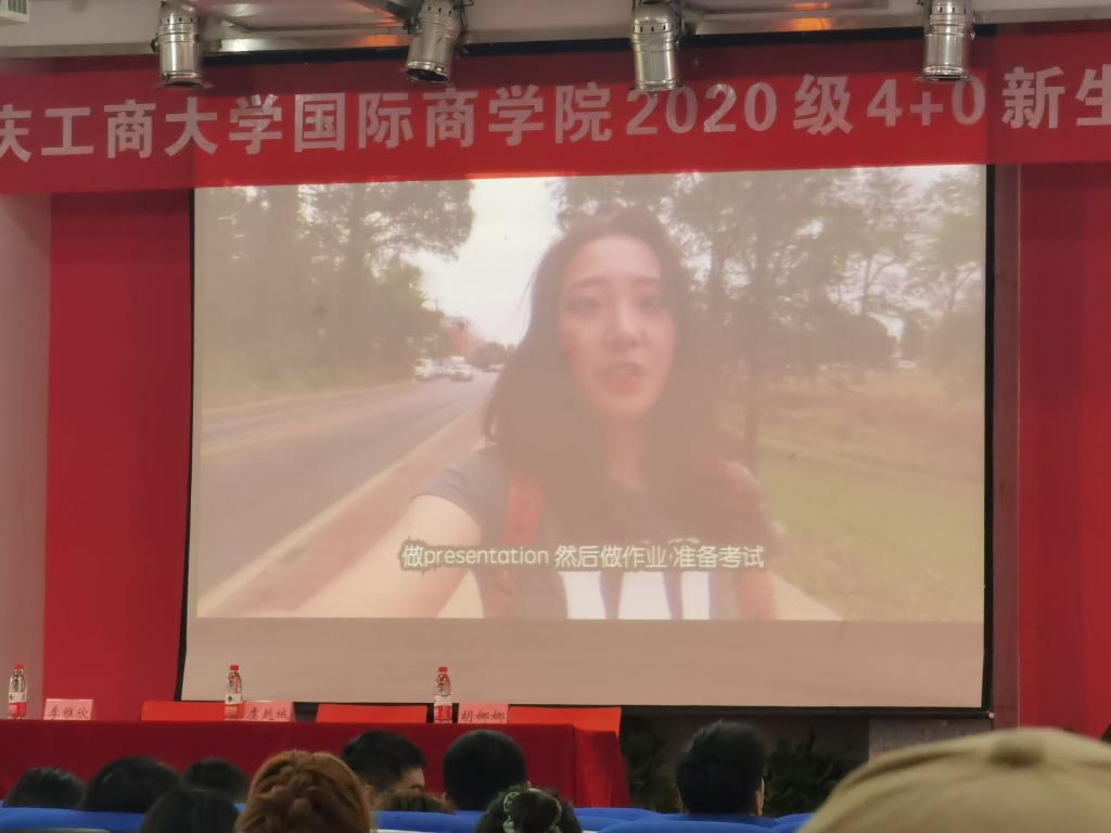 图为:学姐因个人原因无法到场录制视频和2020级新生分享