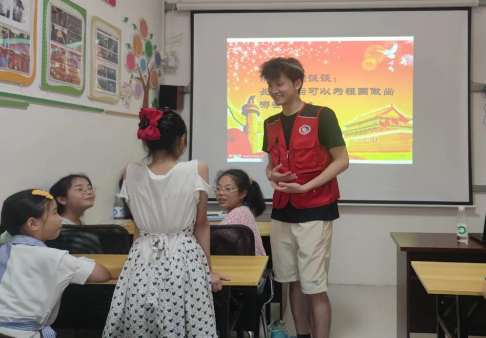 图为社会实践团与学生就可以为国家做什么的问题进行交流