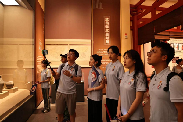 (实践团成员向线上同学讲解馆内藏品 摄影 李祎喆)