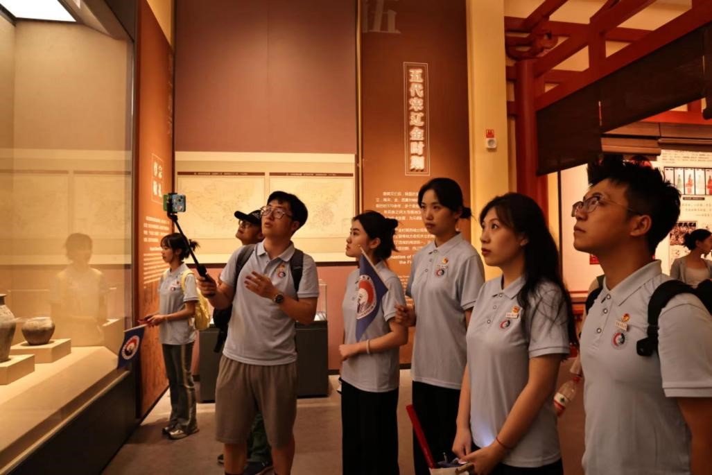 图为实践团成员向线上同学讲解馆内藏品