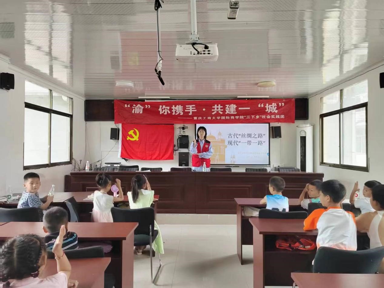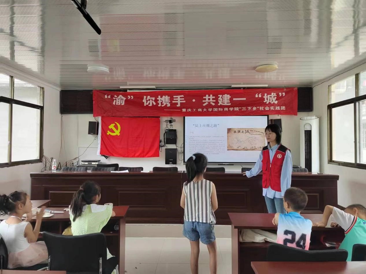 一缕丝绸,串起千年历史,一条商路,承载千年文化。为弘扬中华民族悠久历史和灿烂文化,国际商学院暑期“三下乡”社会实践团于2023年7月13日在重庆市城口县咸宜村青少年之家开展“丝绸之路”主题教育活动。