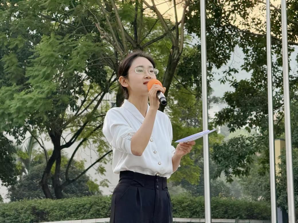 升旗仪式在校歌《大路漫漫其修远长》的演唱中拉开序幕。全体人员在校前广场整装列队,肃穆而立,校国旗护卫队迈着整齐的步伐护送国旗走向升旗台。伴随着庄严的国歌声,五星红旗迎着朝阳冉冉升起。学院党总支副书记、纪委书记胡婧婷在国旗下发表讲话。她向同学们提出了两点希望:一是勉励所有同学要深入学习和贯彻二十届三中全会的精神,呼吁大家将这一精神内化于心、外化于行;二是希望同学们凝聚共识,奋发进取,不断为推进具有中国特色的现代化进程而奋斗,为实现中华民族的伟大复兴而砥砺前行。