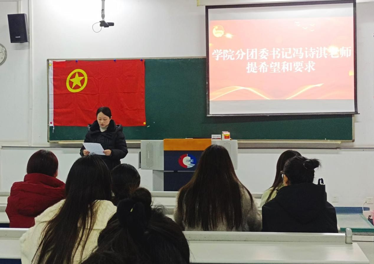 学院团委书记冯诗淇老师对新入团的同学出提出希望。“希望新团员们牢记入团初心,以团员的标准严格要求自己,将个人的成长与国家的命运紧密相连,为实现中华民族伟大复兴贡献青春智慧力量”。