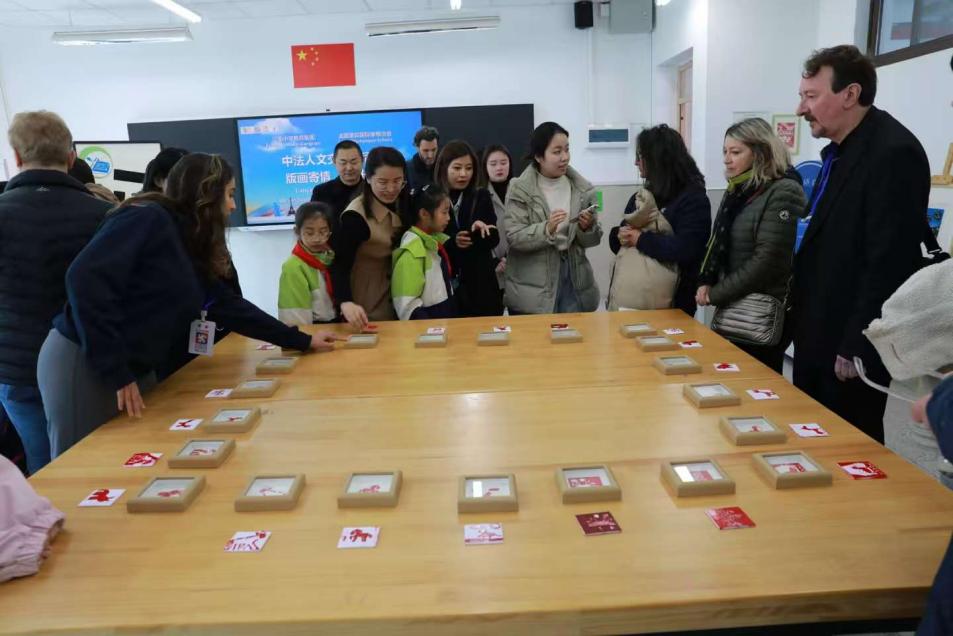 11月26日,代表团一行前往江南小学教育集团联校广茂小学与黄桷垭小学参观交流。在两所学校的社团活动现场,三位同学全程提供口译服务,协助法国代表团体验象棋对弈、编程实践、版画创作等特色课程。面对版画制作中的专业技法讲解、编程课程的技术术语翻译等场景,她们凭借扎实的语言积累与快速反应能力,精准传递教学内容与互动信息,让法国嘉宾深度感受中国基础教育的多元特色与校园文化的独特魅力。