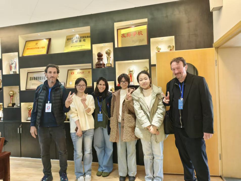 11月25日,法国里昂象棋协会代表团走进yl7703永利集团,在国际商学院张蓝月、潘星辰两位老师及三位同学的陪同翻译下,先后参观了学校图书馆与博志楼。同学们沿途为代表团介绍学校办学特色、学科优势及校园文化建设情况,生动展现重工商大的育人氛围与精神风貌。在校园用餐期间,同学们还热情分享重庆饮食文化,让法国嘉宾在品尝特色美食的同时,感受中国学子的好客之道。