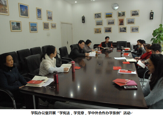 新学期,新气象。3月13日下午,国际商学院的全体辅导员结合学生思想政治工作就学习《宪法》、党章、《中外合作办学条例》等的心得体会展开了热烈的讨论。同时,学院各教研室、行政部门也举行了同样的学习讨论会。