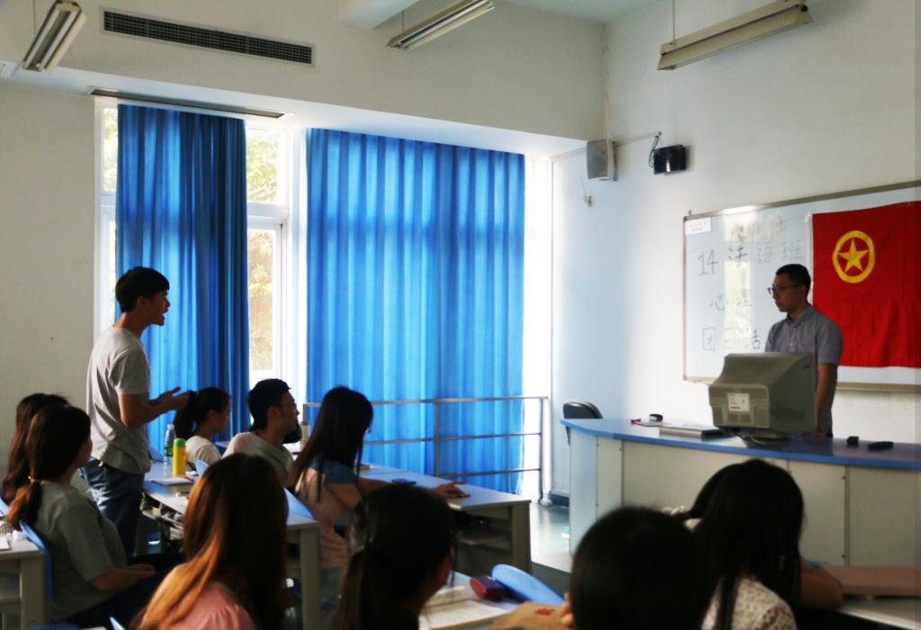 2015年4月29日下午16:40,14级法语班团支部在60202教室开展了心理专题团日活动之“你的内心需要强大”。该班全体同学参与了本次活动,并由该班心理联络员郭晨同学担任本次活动的主持人。