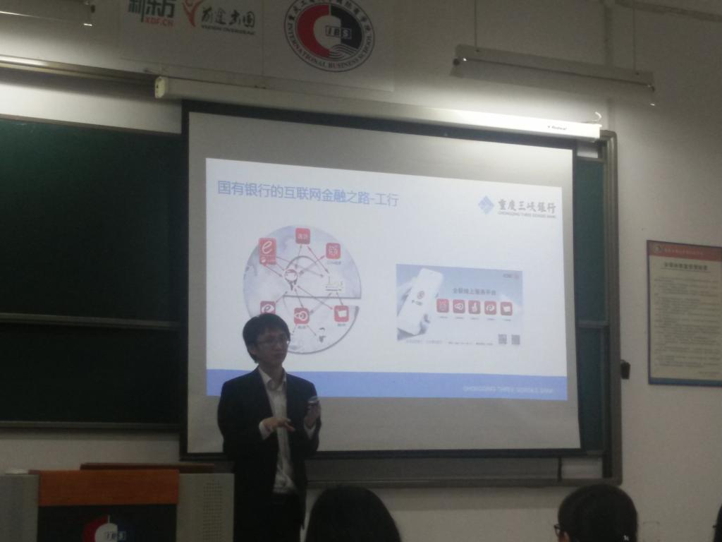 2016年4月22日14时30分,我院重庆三峡银行金融人才实验班第四讲如期而至,主讲人是三峡银行平台金融部主管陈诗恩先生,课程主题为互联网金融。