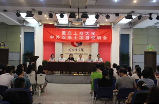 说明会第一阶段,苟朝莉副校长先就我院的历史发展、中外双学士项目合作国家及高校的选择比较、我院中外双学士项目的优势、就读中外双学士项目等向与会的各位家长和同学进行了较全面的介绍。随后,赵驹院长结合学院的办学理念、中外双学士项目特点及给拟就读项目的学生及家长的建议等做了细致讲解;黄谦副书记向大家介绍了学院对中外双学士项目学生的管理要求及学生提高自我综合素质的要求等;张建芳院长助理就中外双学士项目的选拔时间和内容安排,参加选拔学生的必备手续及项目录取新生报到程序做了充分说明。