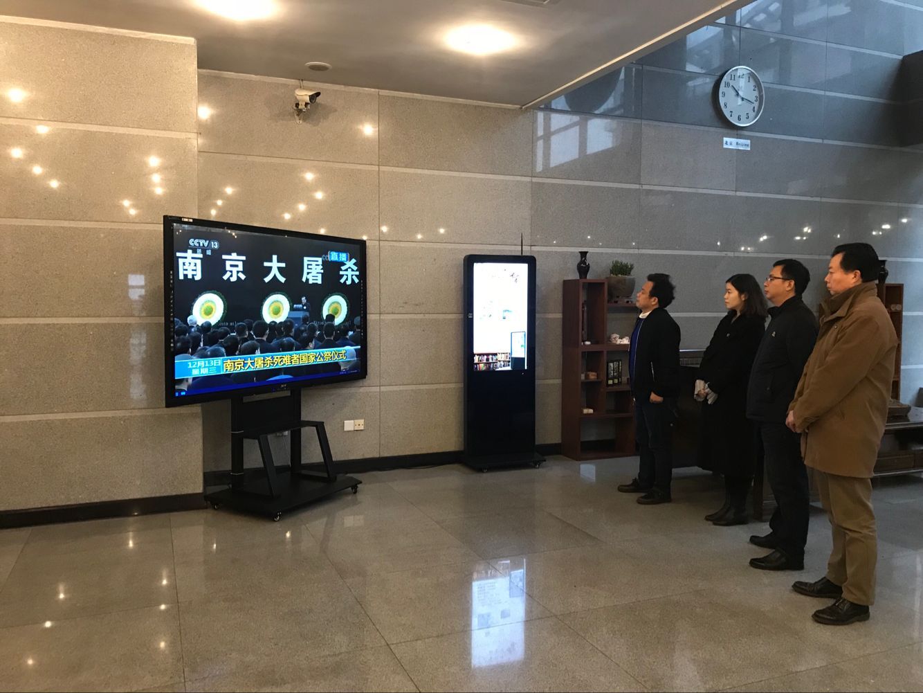 2017年12月13日上午10点,国际商学院院领导班子带领学院党支部书记、师生代表等,在学院一楼大厅电视前集合,集中学习观看南京大屠杀八十周年国家公祭日直播视频。