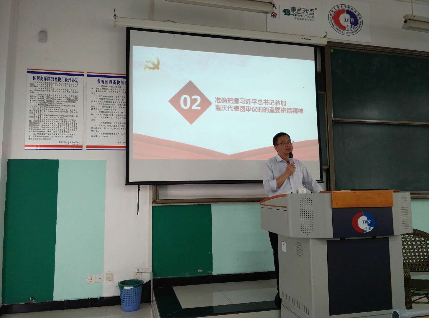 学习活动中,赵驹同志以“习近平总书记全国两会期间系列重要讲话精神”为主线,从2018年全国两会的主要成果、习近平总书记参加重庆代表团审议时的重要讲话精神、习近平总书记在十三届全国人大一次会议闭幕式上的重要讲话精神等三个方面为学院教职工进行了宣讲。