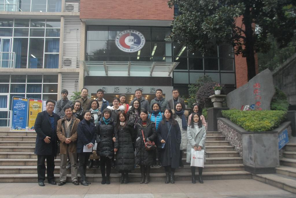 12月12日下午14:30,中国国际教育交流研修学院何培主任、张洁项目主管、孙志鑫老师及培训班成员一行来我校访问。我校国际合作交流处处长韩艳教授、国际商学院总支副书记杨倩及院长助理庞卫真热情接待了来宾。