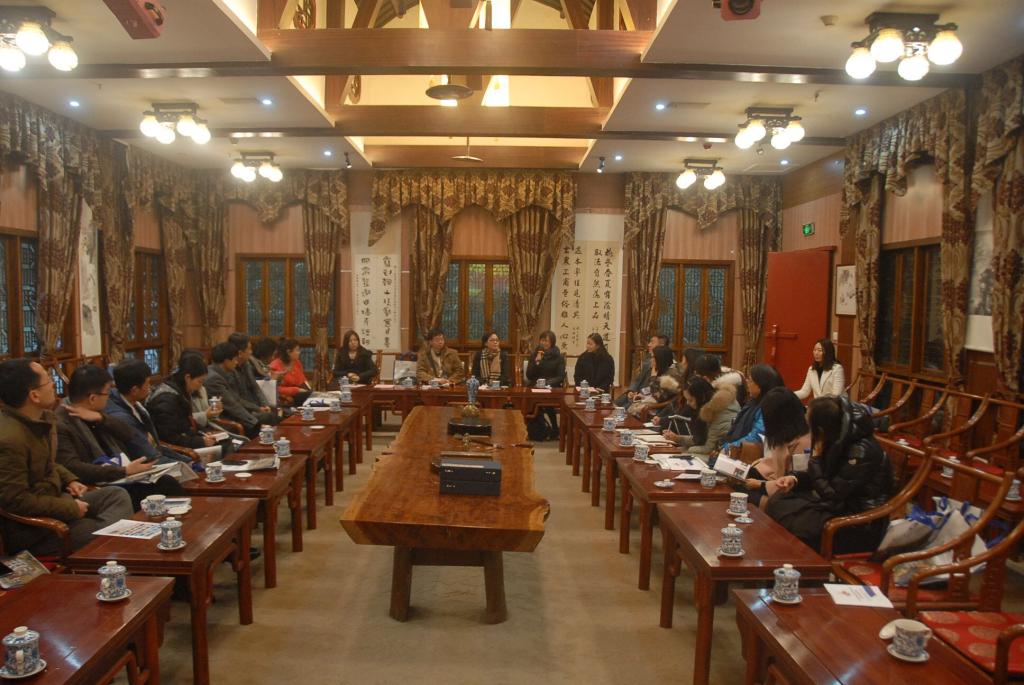 在国际商学院总支副书记杨倩及院长助理庞卫真的引导下,来宾一起参观了国际商学院综合楼,并在南山书院问松厅召开了座谈会,会议由韩艳处长主持。