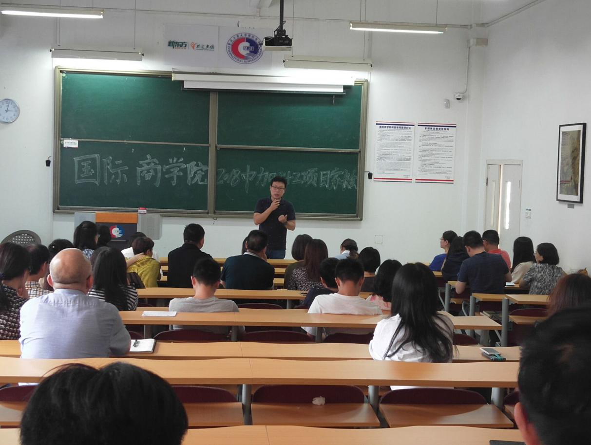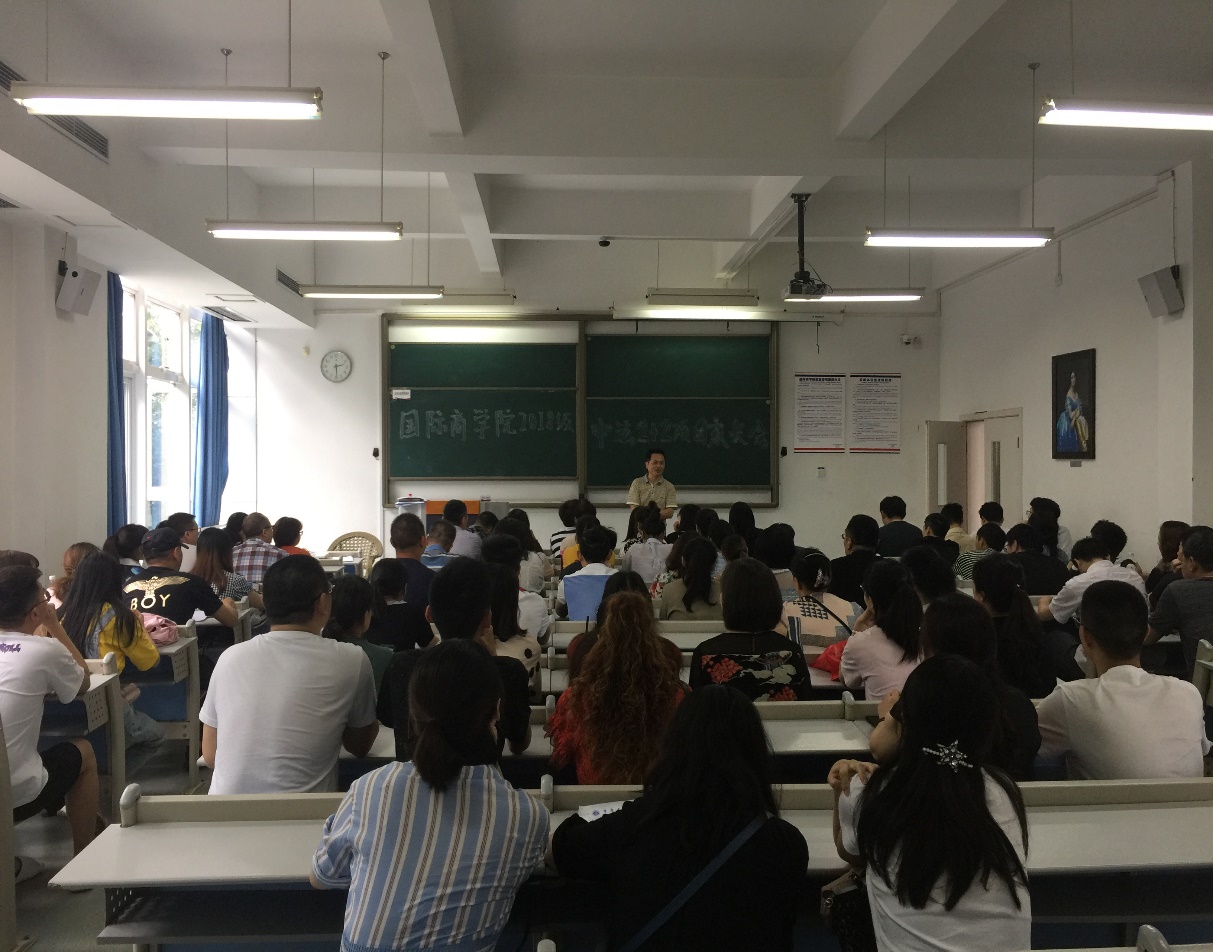 6月14日,2017级、2018级中外双学士项目家长会在国际商学院60407多功能厅顺利举行。会议由国际商学院分团委书记汪洁老师主持,国际商学院党总支书记兼院长赵驹教授,庞为真院长助理,中加项目部李玺老师,中法项目部陈集平老师,专业教研室陈昌盛副教授,学生部刘薇薇老师、熊敏老师等参加了会议。