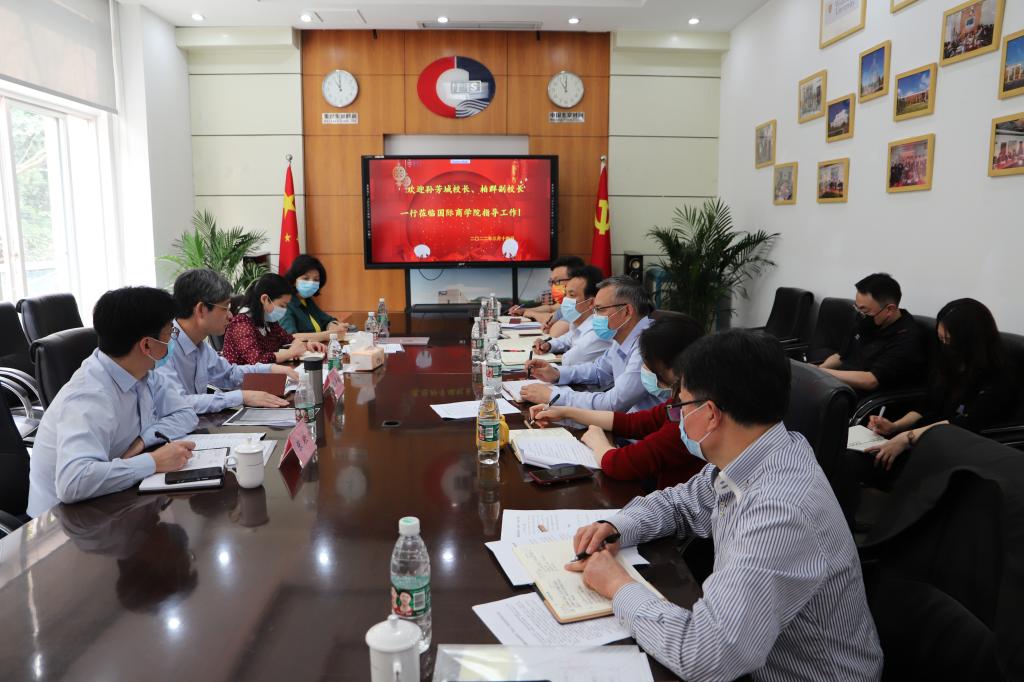 3月14日上午,校长孙芳城、副校长柏群,国际合作与交流处副处长张轶、刘茜一行到国际商学院调研指导工作,学院领导班子成员参加了此次调研会议。