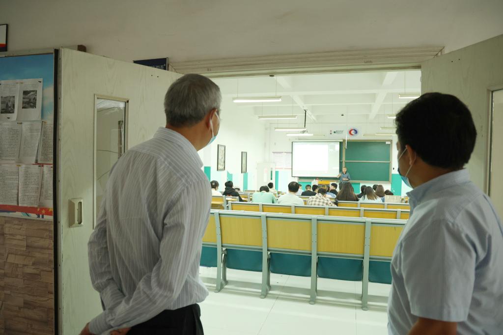 学校副校长李国军及相关职能部门负责人走进学院综合楼及涵智楼教室,查看教室使用情况、教师行课情况、学生出勤与听课情况等。在检查过程中,校领导对学院首日线下教育教学情况表示满意,肯定了学院为新学期各项工作顺利开展做出的精心准备,鼓励全体学生努力学习、奋发向上。