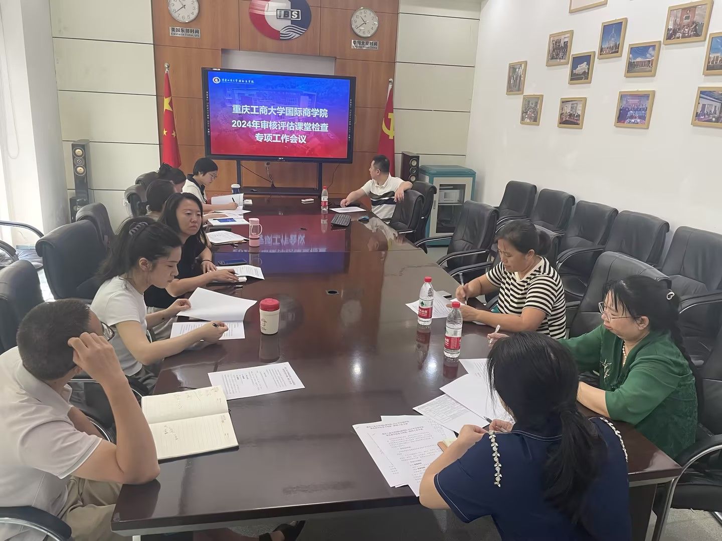 为全面落实学校2024年审核评估课堂教学检查专项工作方案要求我院于9月6日制定了《yl7703永利集团国际商学院2024年审核评估课堂教学检查专项工作第一阶段方案》,9月7日召开了yl7703永利集团国际商学院2024年审核评估课堂检查专项工作会议,学院李大鹏书记、詹川院长以及各系主任、督导、教学秘书以及学院邀请的外院专家参加了会议,会议由詹川院长主持。