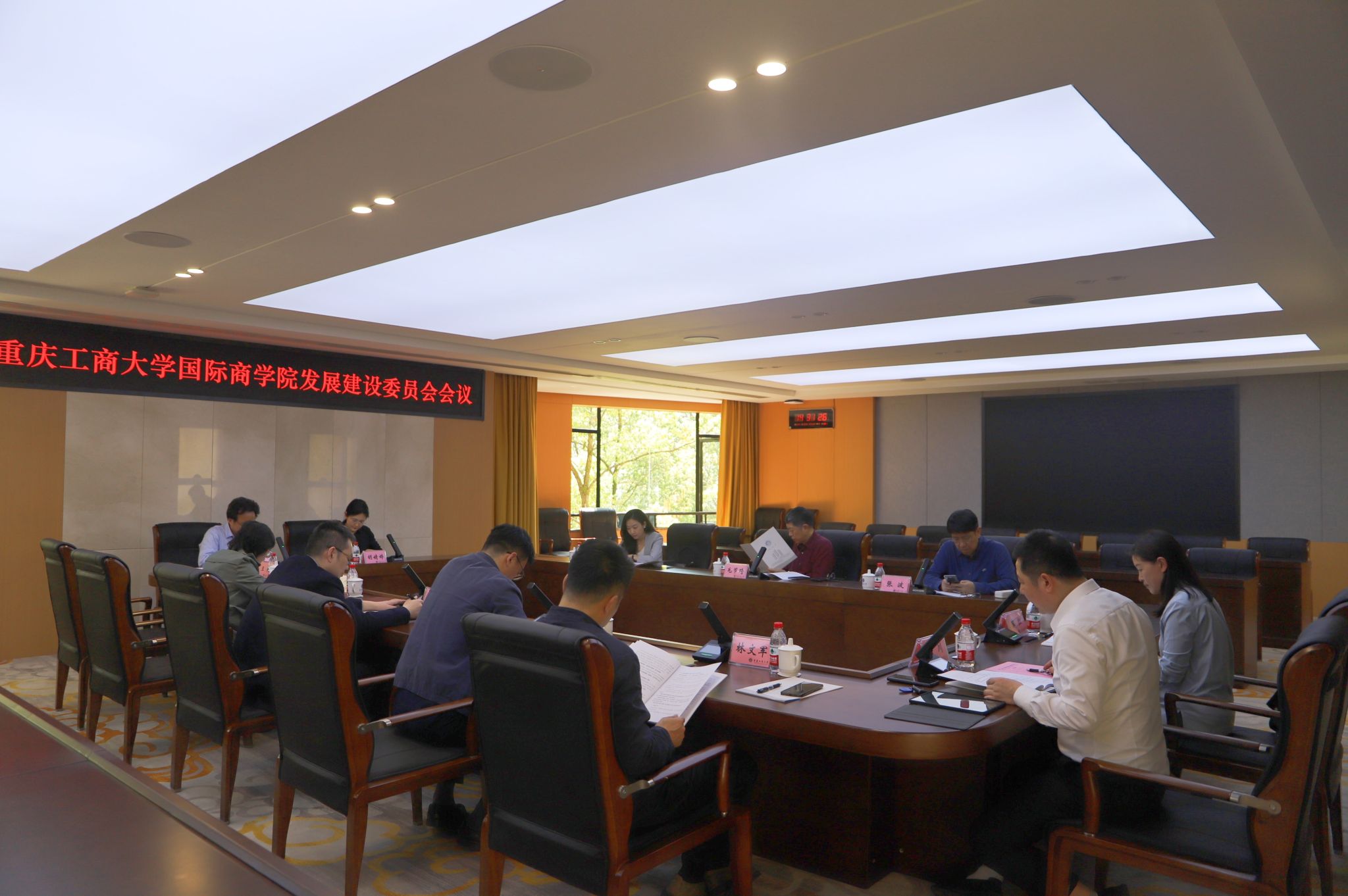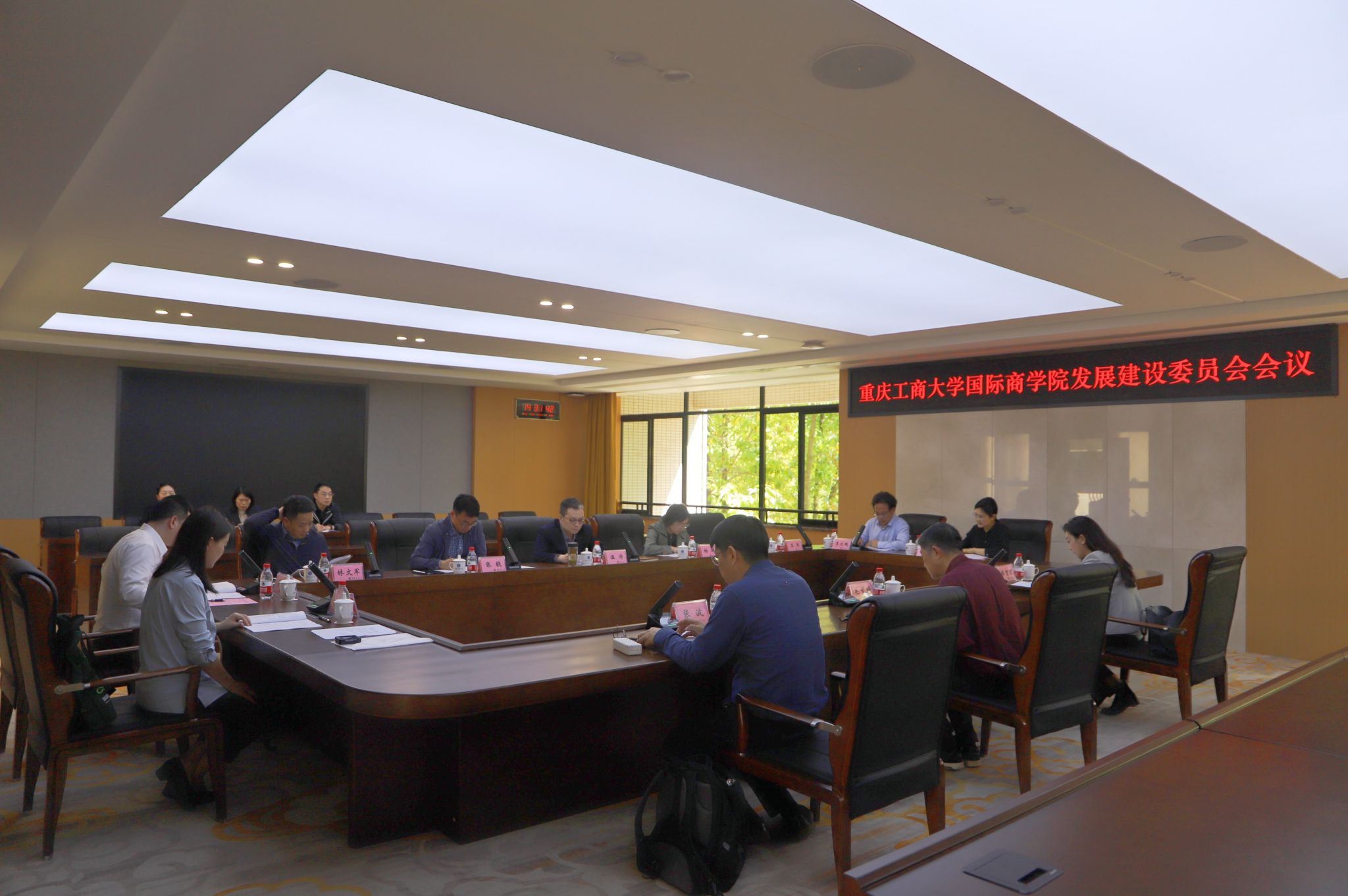2025年3月26日下午,yl7703永利集团国际商学院发展建设委员会召开年度会议。学校校长、发展建设委员会主任温涛,学校党委常委、副校长柏群,人事处处长林文军,国际交流合作处处长张轶、财务处处长王燕,国际商学院党总支书记李大鹏、院长詹川、党总支副书记胡婧婷、院长助理黎红,发展建设委员会副主任毛节琦及投资方成员张波、练智君出席会议。会议由发展建设委员会主任温涛主持。