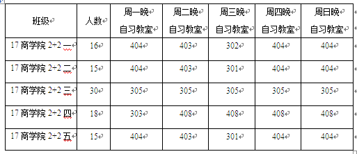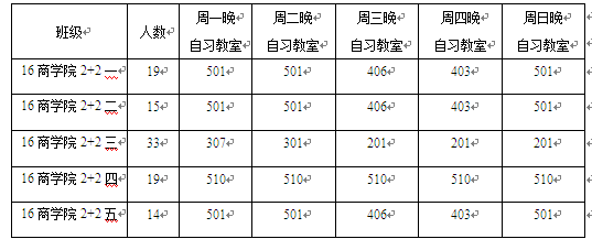 2、  所有中外双学士项目学生必须参加晚自习,出勤按照课堂出勤考核,时间从19:00——21:20。具体晚自习时间、地点如下: