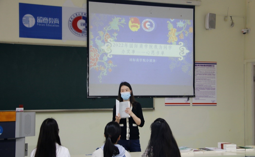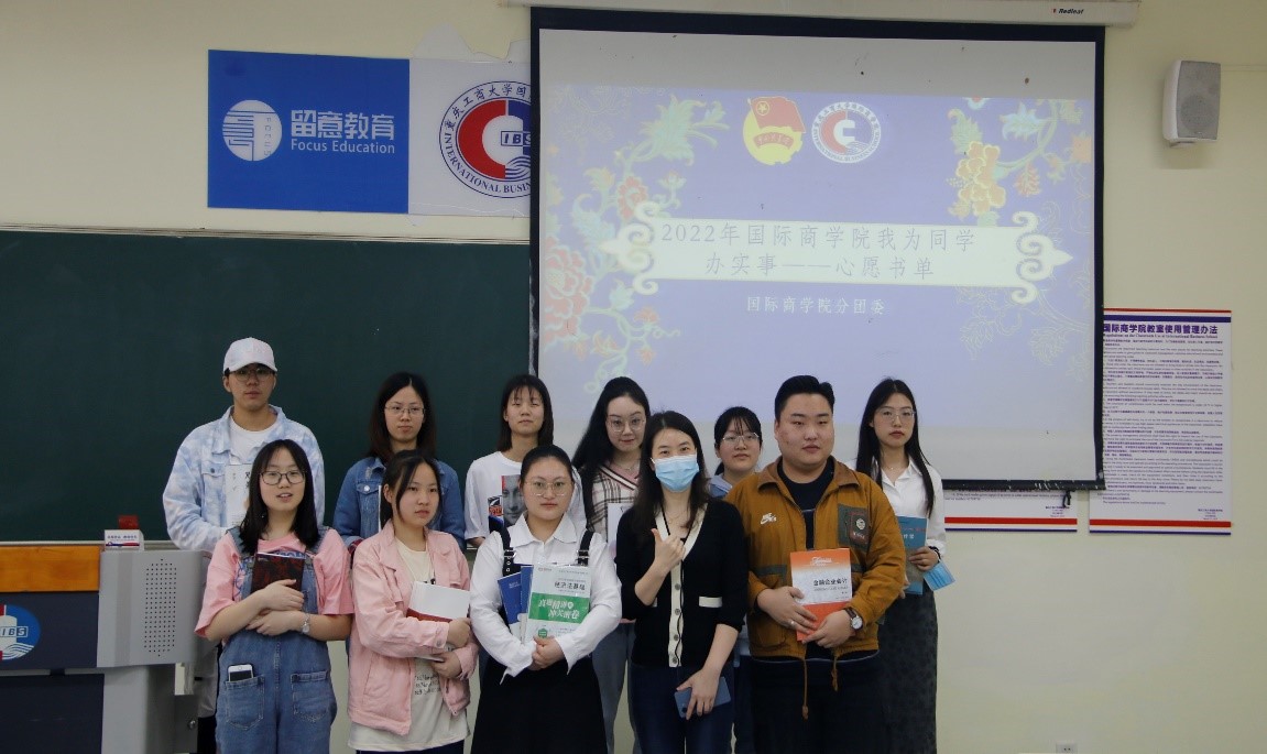为深切落实党的精神文明建设任务,帮扶经济困难学子,2022年4月8日下午两点,国际商学院分团委学生会财务部在国际商学院202教室举办了以“我为同学办实事——心愿书单”为主题的赠书仪式。国际商学院党总支书记陈新力,党总支副书记杨倩,国际商学院副院长李大鹏出席活动。