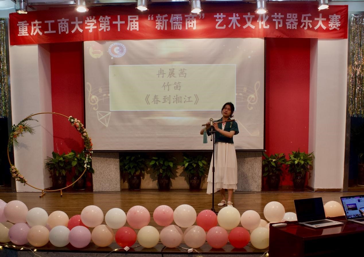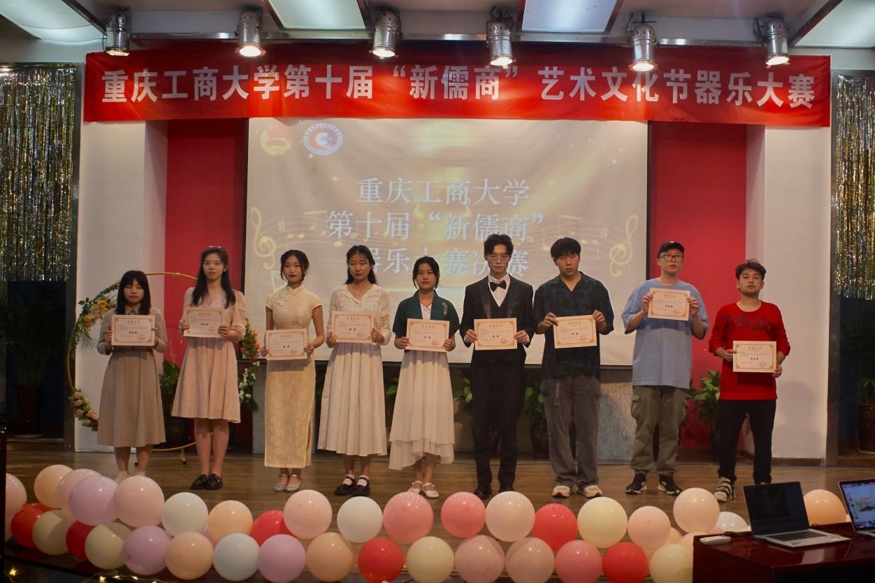 从初赛脱颖而出的十位选手齐聚一堂,展开了激烈的角逐。悠扬的钢琴独奏《人生的旋转木马》,空灵的陶笛曲目《大鱼》、柔和的古筝曲目《幻想曲》、活泼的吉他曲目《Heart》……乐器虽然不同,但演绎出的美妙乐声却是相通的。整个比赛过程节奏时而轻松明快,时而慷慨激昂,选手们用出色的表现为现场观众带来了一场精彩的视听盛宴,一首首曲目让评委和观众们应接不暇,现场掌声与欢呼不断。最终,经过评委评分与观众投票成绩累积,通识学院的冉晨茜同学获得金奖;通识学院唐何金成同学,经济学院卞美杰同学获得银奖;通识学院王山辉同学,法学与社会学学院李至臻同学,人工智能学院蒲双喜同学获得铜奖;国际商学院谭可涵同学,机械工程学院买买提明·司拉木同学,会计学院刘思晨同学,经济学院于易民同学获得优秀奖。在祝贺与鼓励的掌声中,yl7703永利集团第十届“新儒商”器乐大赛圆满结束。